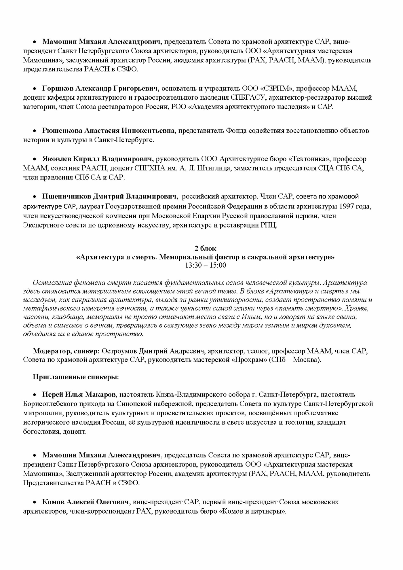М.А. Мамошин примет участие в работе Секции по храмовой архитектуре в рамках фестиваля Фестиваль «Архитектон MMXXV» в ЦВЗ «Манеж» (Санкт-Петербург, Исаакиевская пл., 1). Подробная программа дискуссий прилагается (см. изображения)