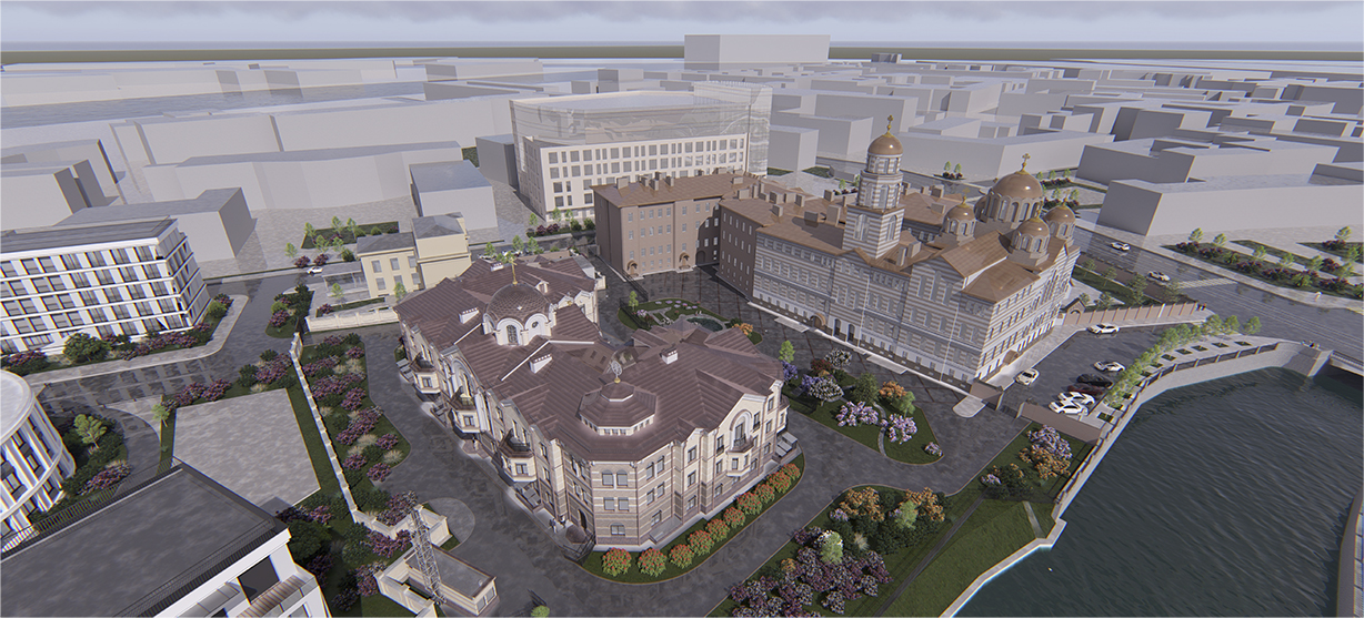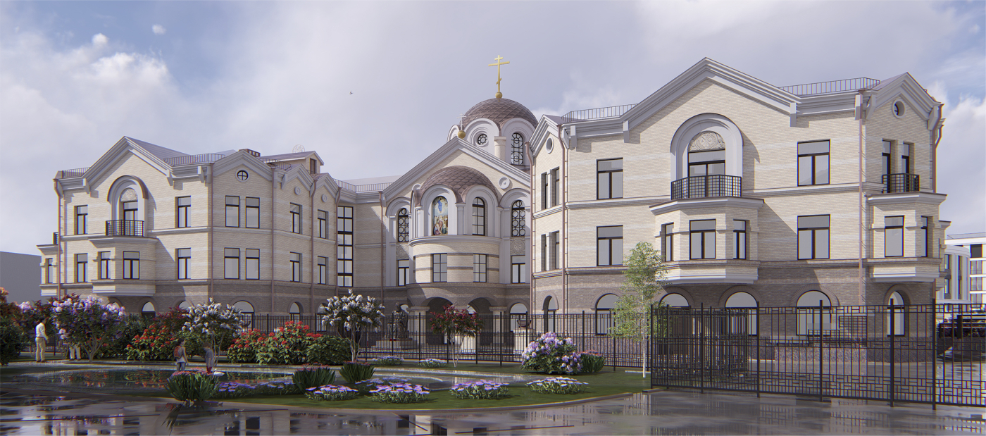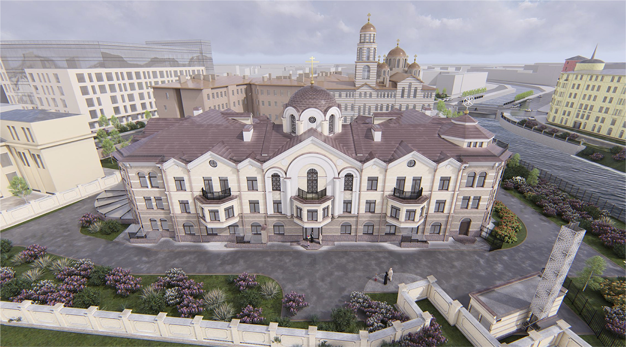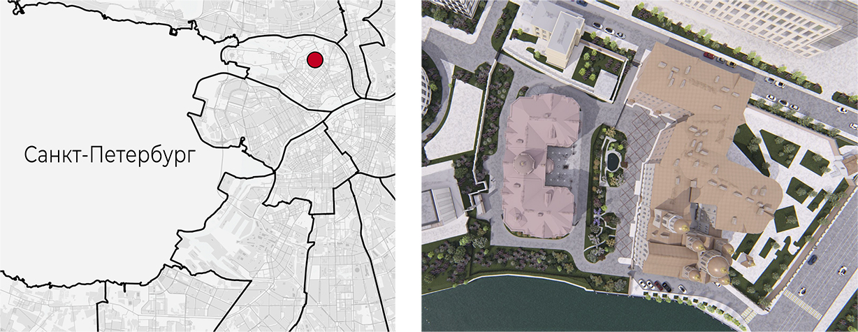 Проект нового центра разработан для участка в историческом районе Петроградской стороны, непосредственно примыкающего к ансамблю Свято-Иоанновского ставропигиального женского монастыря на набережной реки Карповки. Его расположение решает градостроительную задачу: завершение пространства монастырского двора и гармоничная поддержка линии застройки уличного фронта, композиционное продолжение здания монастыря, спроектированного архитектором Н.Г. Никоновым.