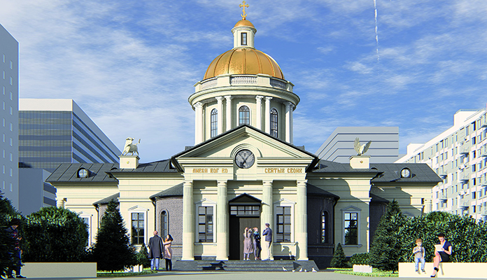 Серебряный знак Международного фестиваля «Зодчество 2025» получил коллектив ООО «Архитектурная мастерская Мамошина» за мастерское владение языком классической архитектуры при создании Храма.
